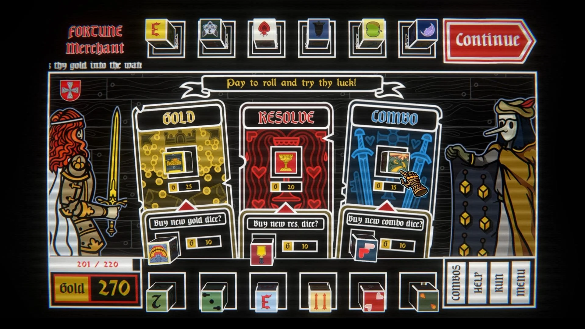 Dicealot is a Arthurian-inspired roguelike diebuilder. Play fantastical Farkle hands to earn magical Quest-Dice and complete your adventure.